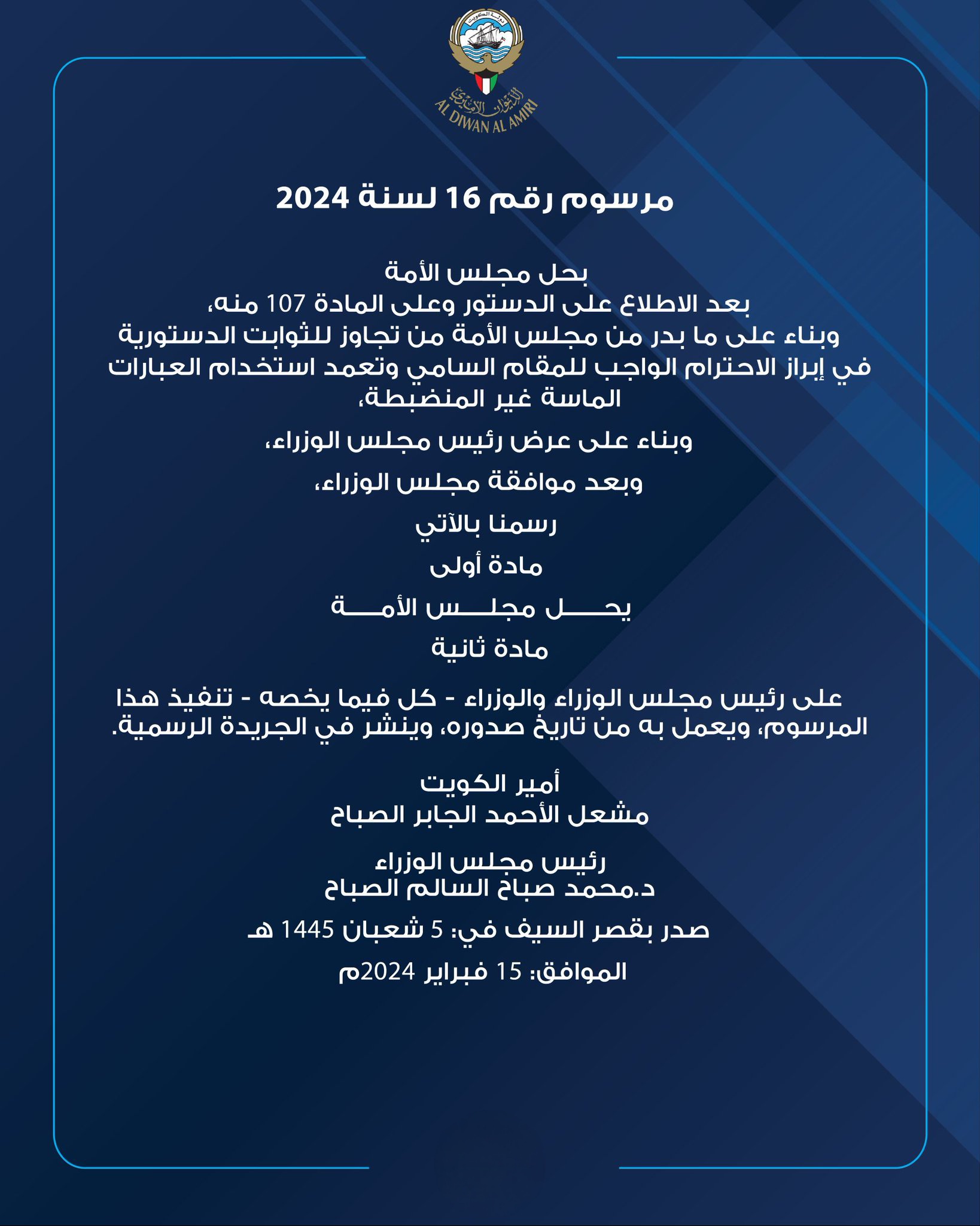 الموقع متوقف لحين عودة مجلس الامة